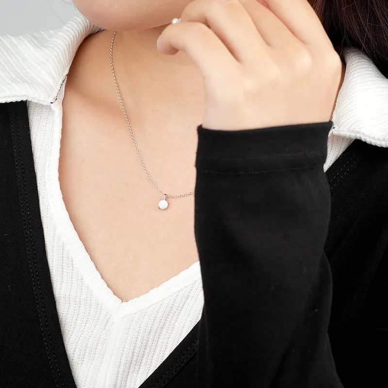 quantité de Aimgal Fine Jewelry S925 Sterling Silver White Opal Necklace Clavicular Chain Simple Four-claw Inlay