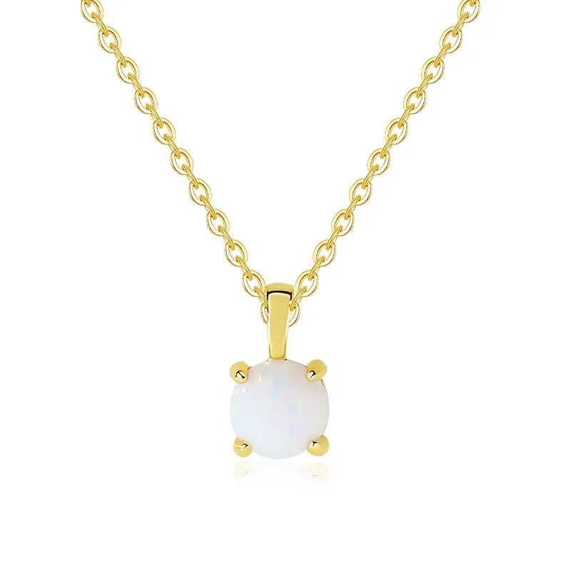 Aimgal Fine Jewelry S925 Sterling Silver White Opal Necklace Clavicular Chain Simple Four-claw Inlay